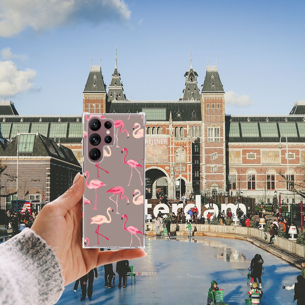 Ben je op zoek naar een uniek telefoonhoesje voor je Samsung Galaxy S23 Ultra? Dan ben je bij B2C Telecom aan het juiste adres! Speciaal voor jou hebben we dit prachtige Flamingo design in onze collectie hoesjes opgenomen. Het design wordt bedrukt op een Case Anti-shock en is gemaakt van flexibel rubber. Het hoesje is perfect voor de actieve smartphonegebruiker door de opstaande randen/hoeken. Denk aan mensen die veel sporten, reizen of wandelen en net iets meer zekerheid willen als het op hun geliefde telefoon aankomt. Het design wordt alleen aan de bovenkant van het hoesje bedrukt en de randen blijven transparant. Aan de zijkanten zijn uitsparingen gemaakt waardoor je met gemak alle knoppen en poorten kunt bedienen. Wij adviseren om dit hoesje in combinatie met een screenprotector te gebruiken voor een langere levensduur van je telefoon. Wil je dit hoesje nog iets extra's geven? Voeg dan gratis je naam of een quote toe! Is dit design hoesje toch niet helemaal wat je zocht? Ontwerp dan zelf een hoesje in ons ontwerpprogramma.