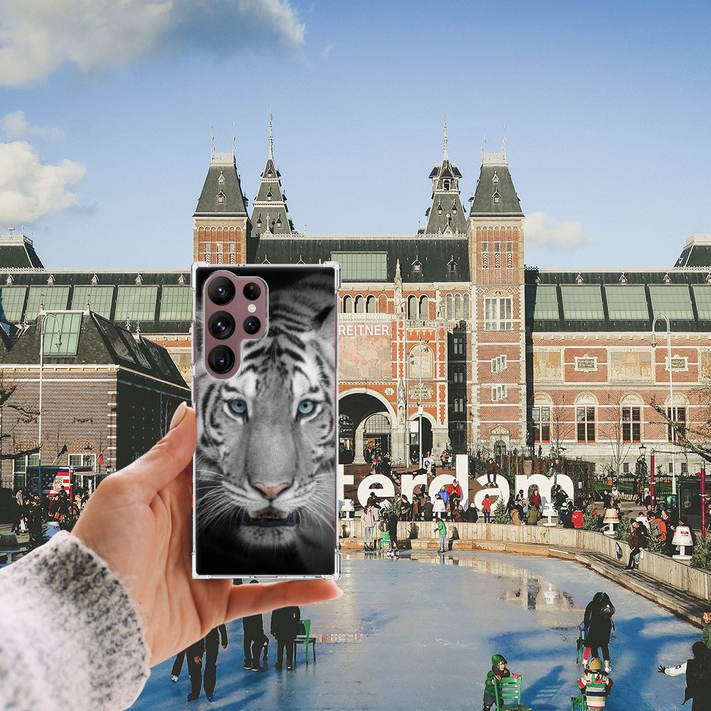 Ben je op zoek naar een uniek telefoonhoesje voor je Samsung Galaxy S23 Ultra? Dan ben je bij B2C Telecom aan het juiste adres! Speciaal voor jou hebben we dit prachtige Tijger design in onze collectie hoesjes opgenomen. Het design wordt bedrukt op een Case Anti-shock en is gemaakt van flexibel rubber. Het hoesje is perfect voor de actieve smartphonegebruiker door de opstaande randen/hoeken. Denk aan mensen die veel sporten, reizen of wandelen en net iets meer zekerheid willen als het op hun geliefde telefoon aankomt. Het design wordt alleen aan de bovenkant van het hoesje bedrukt en de randen blijven transparant. Aan de zijkanten zijn uitsparingen gemaakt waardoor je met gemak alle knoppen en poorten kunt bedienen. Wij adviseren om dit hoesje in combinatie met een screenprotector te gebruiken voor een langere levensduur van je telefoon. Wil je dit hoesje nog iets extra's geven? Voeg dan gratis je naam of een quote toe! Is dit design hoesje toch niet helemaal wat je zocht? Ontwerp dan zelf een hoesje in ons ontwerpprogramma.