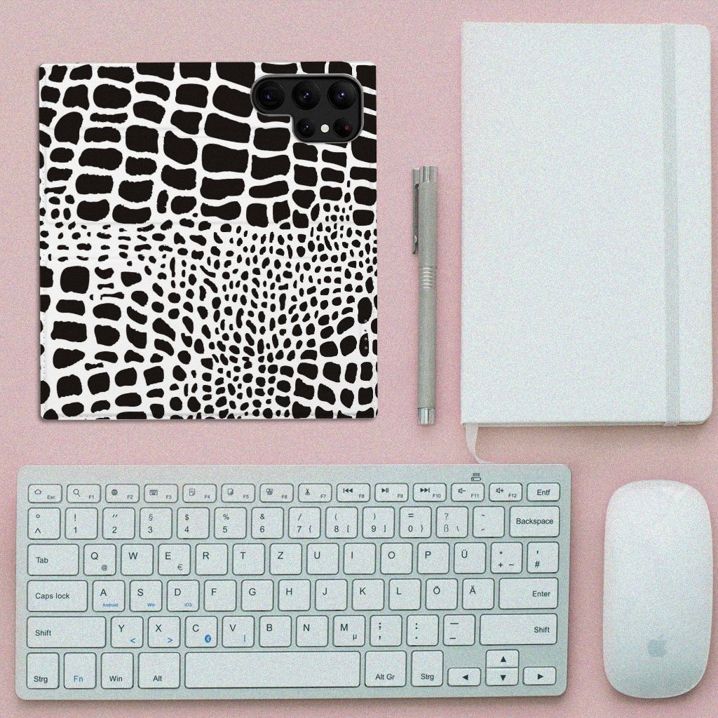 Deze stand case met zwarte en witte Slangenprint kunnen wij zeer exclusief noemen. Zeker als je er nog een bijzondere tekst van jezelf aan toevoegt, zoals je eigen naam in een sierletter. Jouw stand case krijgt dan een persoonlijke uitstraling, net nog een beetje specialer dan dit hoesje met zwarte en witte slangenprint. Wat niets afdoet van de exclusiviteit van deze stand case met zwarte en witte slangenprint. Ben jij toe aan een stoer en opvallend Samsung Galaxy S23 Ultra Hoesje maken? Pak dan dit design met print van slangenhuid als basis. Het stand hoesje met zwarte en witte slangenprint is van PU-leer (buitenzijde) en TPU (binnenzijde) en beschikt over een houder en een standaard. Verder is dit stand hoesje met slangenprint voorzien van een magnetische sluiting aan de binnenkant. Jij bent ervan verzekerd dat jouw smartphone tegen een stootje kan met dit stand hoesje met zwarte en witte slangenprint.