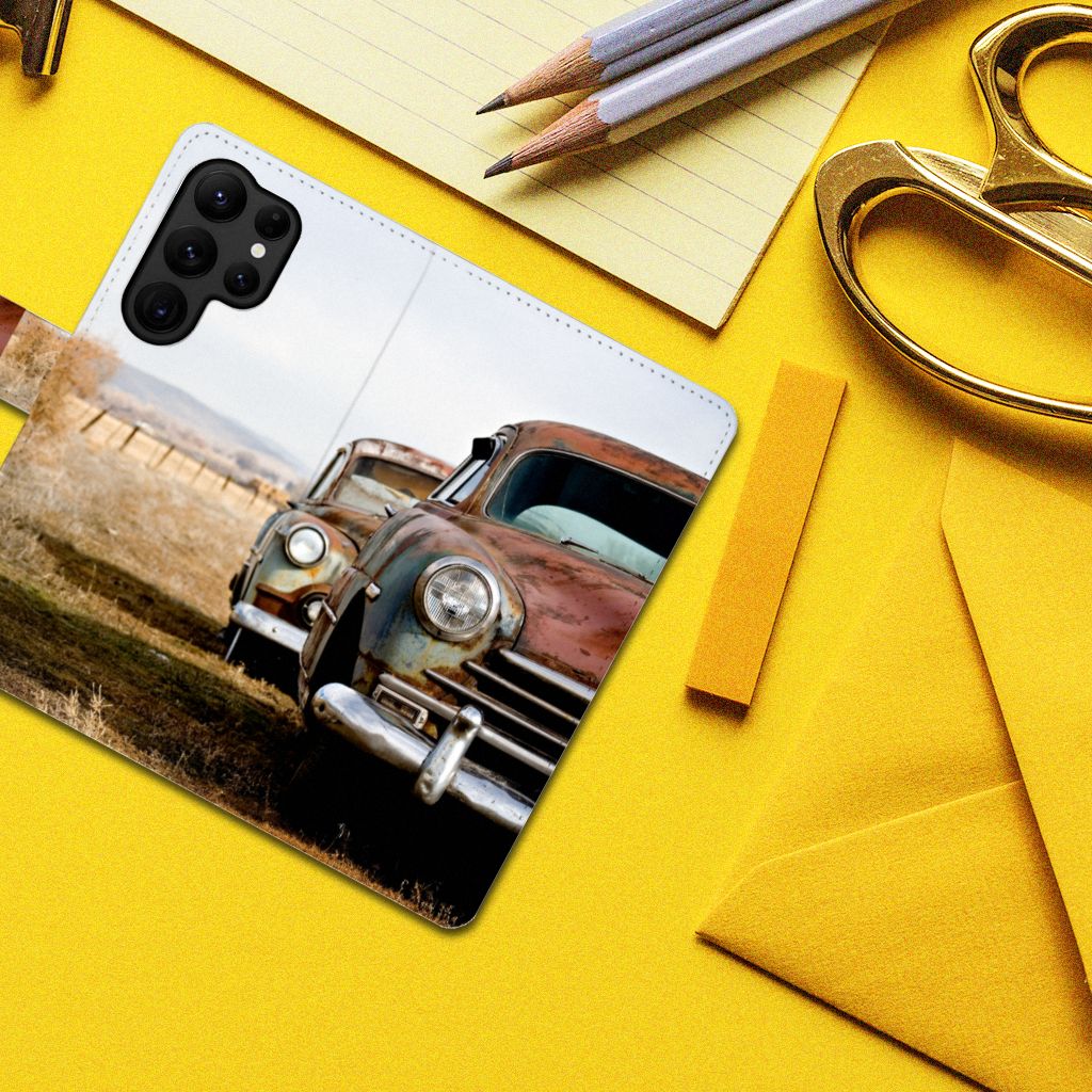 Samsung Galaxy S23 Ultra Telefoonhoesje met ruimte voor 3 pasjes Vintage Auto