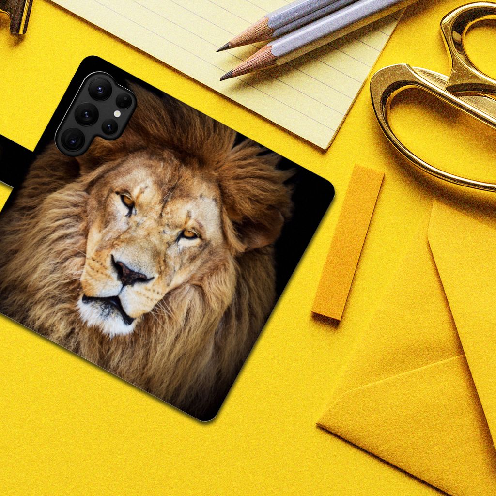 Samsung Galaxy S23 Ultra Telefoonhoesje met Pasjes en met magnetische sluitclip Leeuw