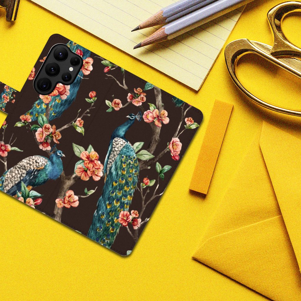 Samsung Galaxy S23 Ultra Telefoonhoesje sluit met magnetisch lipje Pauw | Bloemen