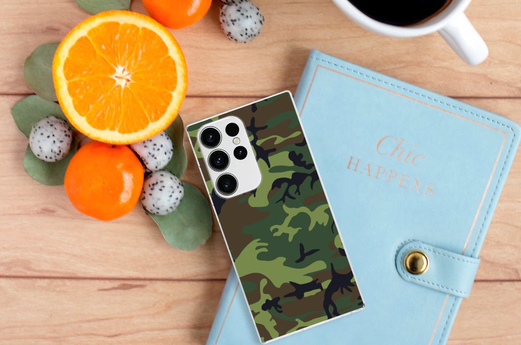 Voel je jezelf verbonden met het leger, dan zal deze Samsung Galaxy S23 Ultra TPU bumper je zeker bevallen. Het tpu hoesje beschikt namelijk over donkere camouflage kleuren. Deze worden vaak gebruikt door mensen die zich graag willen mengen in hun omgeving. Dit Army Dark hoesje is er dus voornamelijk in kleuren die in de natuur voorkomen, zodat je één wordt met je achtergrond. Beschermt de krijgsmacht volk en vaderland, dit hoesje in donkere camouflage kleuren zal jouw telefoon onder alle omstandigheden schadevrij houden. Met een hoesje in dit soort kleuren zal je niet zo snel opvallen. Het design staat op een TPU case. Dit hoesje wordt alleen aan de bovenkant bedrukt met donkere camouflage kleuren en is zeer flexibel. De randen van het hoesje blijven transparant.