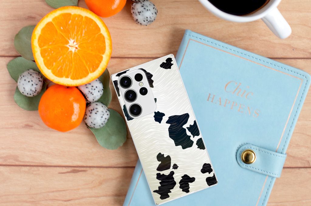 De vlekken op de huid van een koe hebben een camouflage functie. Met deze Samsung Galaxy S23 Ultra TPU Hoesje met Koeienvlekken hoef je je geen zorgen te maken dat je smartphone schade oploopt. De koeienvlekken zetten we op een tpu case op het moment dat jij je bestelling plaatst. Hierdoor krijgt jouw telefoon een print van koeienvlekken van zeer hoge kwaliteit. Ook omdat we het bedrukken van deze case geheel zelf doen. Jouw telefoon is vooral aan de achterkant en zijkanten goed beschermd. De print van koeienvlekken komt op de bovenkant van het hoesje te staan, de randen blijven doorzichtig. Roofdieren zijn niet geïnteresseerd in koeien dankzij de vlekken op hun huid. Deze beschermende werking heeft ook jouw hoesje met koeienprint.