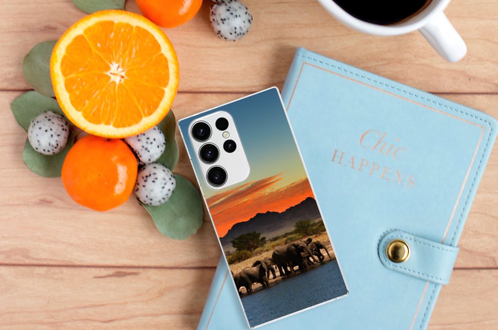 Dit hoesje is zo sterk als een olifant. Dat is goed nieuws, want jouw telefoon heeft een zeer goede bescherming nodig. Dat krijg je met dit design hoesje met print van Olifanten. De Afrikaanse olifant, het allergrootste landdier ter wereld, heeft waarschijnlijk het meest te lijden gehad van stroperij om het ivoor. Deze dieren verdienen dus een goede bescherming, net als jouw smartphone. Met een Samsung Galaxy S23 Ultra TPU Hoesje met olifant erop krijg je dit zeker voor elkaar. De tpu case beschermt vooral de achterkant en zijkanten van je telefoon en is gemaakt van onbreekbaar materiaal. De sterke olifant komt zeer goed tot zijn recht op deze case, die zeer flexibel is. Alleen de bovenzijde van de case wordt bedrukt met olifanten, de zijkanten blijven transparant.