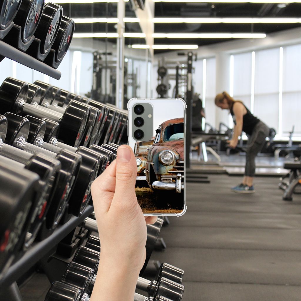 Ben je op zoek naar een uniek telefoonhoesje voor je Samsung Galaxy S24? Dan ben je bij B2C Telecom aan het juiste adres! Speciaal voor jou hebben we dit prachtige Vintage Auto design in onze collectie hoesjes opgenomen. Het design wordt bedrukt op een Anti-shock Hoesje met foto en is gemaakt van flexibel rubber. Het hoesje is perfect voor de actieve smartphonegebruiker door de opstaande randen/hoeken. Denk aan mensen die veel sporten, reizen of wandelen en net iets meer zekerheid willen als het op hun geliefde telefoon aankomt. Het design wordt alleen aan de bovenkant van het hoesje bedrukt en de randen blijven transparant. Aan de zijkanten zijn uitsparingen gemaakt waardoor je met gemak alle knoppen en poorten kunt bedienen. Wij adviseren om dit hoesje in combinatie met een screenprotector te gebruiken voor een langere levensduur van je telefoon. Wil je dit hoesje nog iets extra's geven? Voeg dan gratis je naam of een quote toe! Is dit design hoesje toch niet helemaal wat je zocht? Ontwerp dan zelf een hoesje in ons ontwerpprogramma.