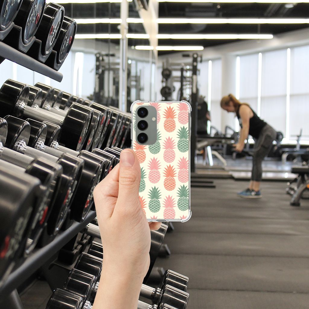 Ben je op zoek naar een uniek telefoonhoesje voor je Samsung Galaxy S24? Dan ben je bij B2C Telecom aan het juiste adres! Speciaal voor jou hebben we dit prachtige Ananas design in onze collectie hoesjes opgenomen. Het design wordt bedrukt op een Beschermhoes en is gemaakt van flexibel rubber. Het hoesje is perfect voor de actieve smartphonegebruiker door de opstaande randen/hoeken. Denk aan mensen die veel sporten, reizen of wandelen en net iets meer zekerheid willen als het op hun geliefde telefoon aankomt. Het design wordt alleen aan de bovenkant van het hoesje bedrukt en de randen blijven transparant. Aan de zijkanten zijn uitsparingen gemaakt waardoor je met gemak alle knoppen en poorten kunt bedienen. Wij adviseren om dit hoesje in combinatie met een screenprotector te gebruiken voor een langere levensduur van je telefoon. Wil je dit hoesje nog iets extra's geven? Voeg dan gratis je naam of een quote toe! Is dit design hoesje toch niet helemaal wat je zocht? Ontwerp dan zelf een hoesje in ons ontwerpprogramma.