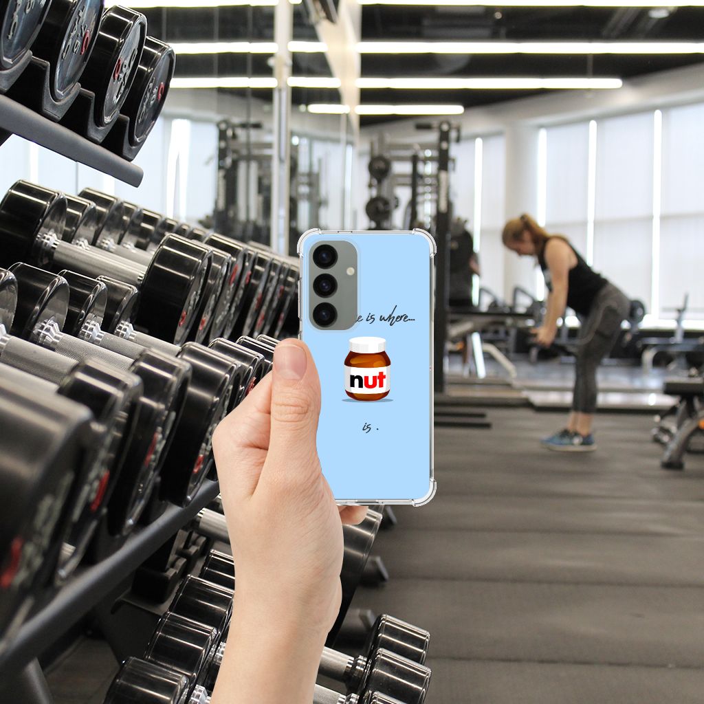Ben je op zoek naar een uniek telefoonhoesje voor je Samsung Galaxy S24? Dan ben je bij B2C Telecom aan het juiste adres! Speciaal voor jou hebben we dit prachtige Nut Home design in onze collectie hoesjes opgenomen. Het design wordt bedrukt op een Beschermhoes en is gemaakt van flexibel rubber. Het hoesje is perfect voor de actieve smartphonegebruiker door de opstaande randen/hoeken. Denk aan mensen die veel sporten, reizen of wandelen en net iets meer zekerheid willen als het op hun geliefde telefoon aankomt. Het design wordt alleen aan de bovenkant van het hoesje bedrukt en de randen blijven transparant. Aan de zijkanten zijn uitsparingen gemaakt waardoor je met gemak alle knoppen en poorten kunt bedienen. Wij adviseren om dit hoesje in combinatie met een screenprotector te gebruiken voor een langere levensduur van je telefoon. Wil je dit hoesje nog iets extra's geven? Voeg dan gratis je naam of een quote toe! Is dit design hoesje toch niet helemaal wat je zocht? Ontwerp dan zelf een hoesje in ons ontwerpprogramma.