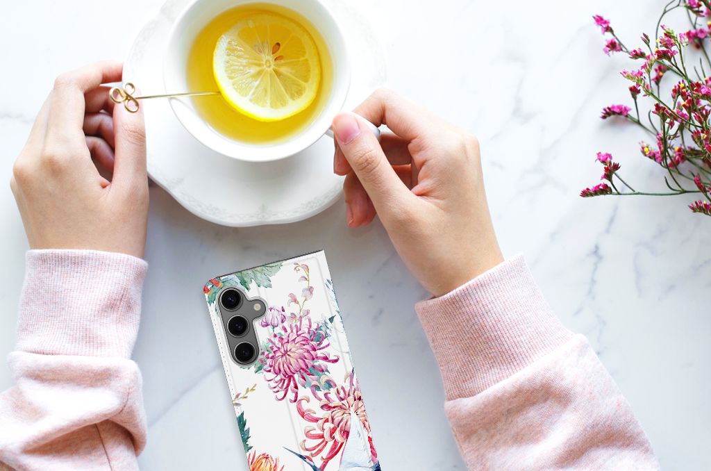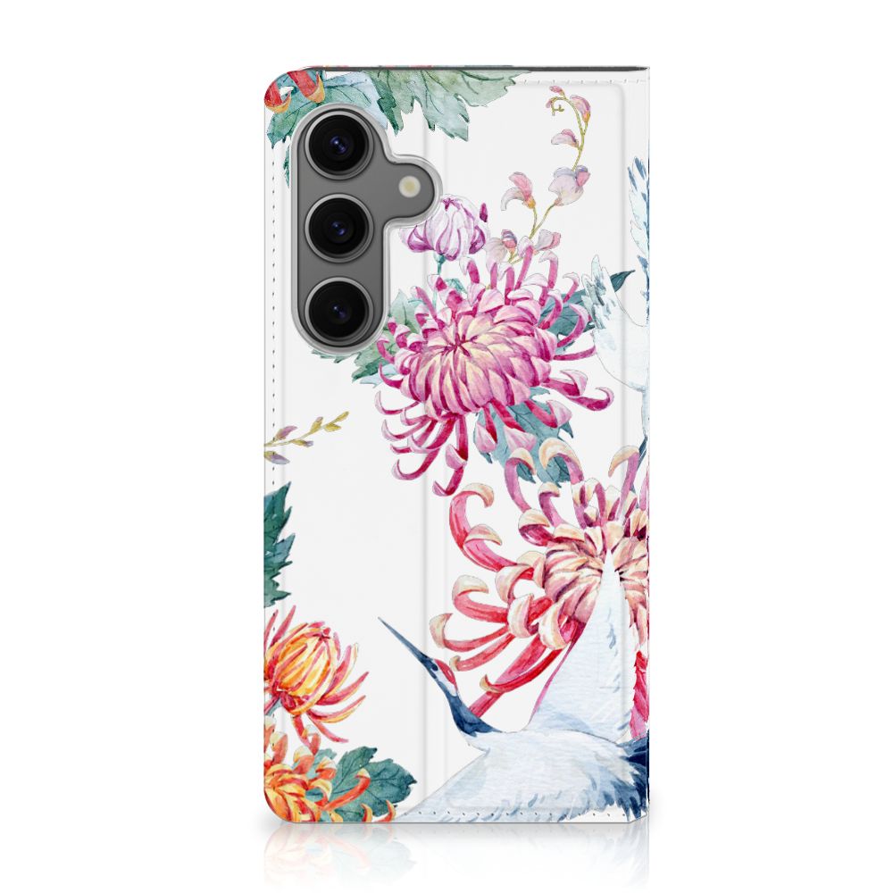 Verspreid over de hele wereld leven 19 soorten ooievaars. De spanwijdte – dat is de afstand van vleugeltip tot vleugeltip – van een volwassen ooievaar kan 2.50 meter bedragen. De gebieden waarin de ooievaar broedt, liggen in heel Europa, het Midden-Oosten, West- en Centraal-Azië en Noordwest-Afrika. Het ideale leefgebied van de ooievaar is een half open tot open landschap met veel afwisseling in grondgebruik en begroeiing. De begroeiing op dit design hoesje, in allerlei verschillende kleuren, zal niet alleen voor de ooievaars fraai zijn. Jij zult er zelf ook heel vrolijk van worden. Het in het oog springende design staat op een Hoesje maken. Deze case beschermt jouw Samsung Galaxy S24 aan alle kanten en beschikt over een 1 opbergvakje en een speciale standaard. Het hoesje wordt afgesloten met een magneet aan de binnenzijde. De houder aan de binnenzijde is van TPU. Alle zijden van de stand case worden bedrukt.
