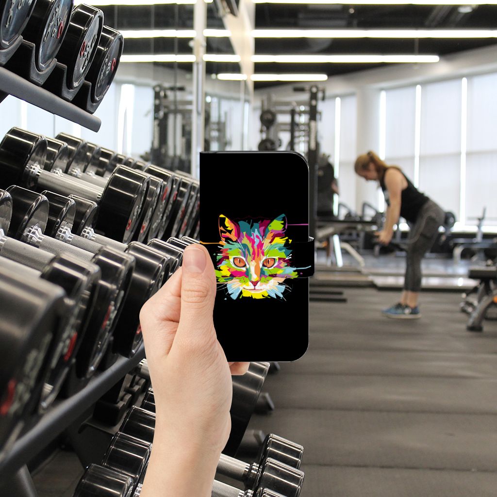 Als jij van katten houdt en op zoek bent naar een uniek hoesje, dan is dit het hoesje wat je wilt hebben. Op de voorkant van dit Leuk Hoesje vind je namelijk een mooie afbeelding van een kat in alle kleuren van de regenboog op een zwarte klassieke achtergrond. Naast dat het een mooi hoesje betreft, is het ook nog eens ontzettend handig. Zo kun je in deze bookcase wel twee á drie pasjes en briefgeld kwijt. Hiermee kun je jouw belangrijkste bezittingen op een plek bewaren in het boekhoesje en kun je jouw portemonnee voortaan thuislaten. Een bookcase heeft daarnaast ook nog het voordeel dat jouw telefoon aan alle zijdes wordt beschermd in dit leuke hoesje, dubbel zo handig dus!