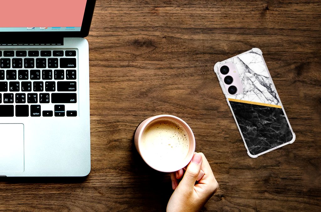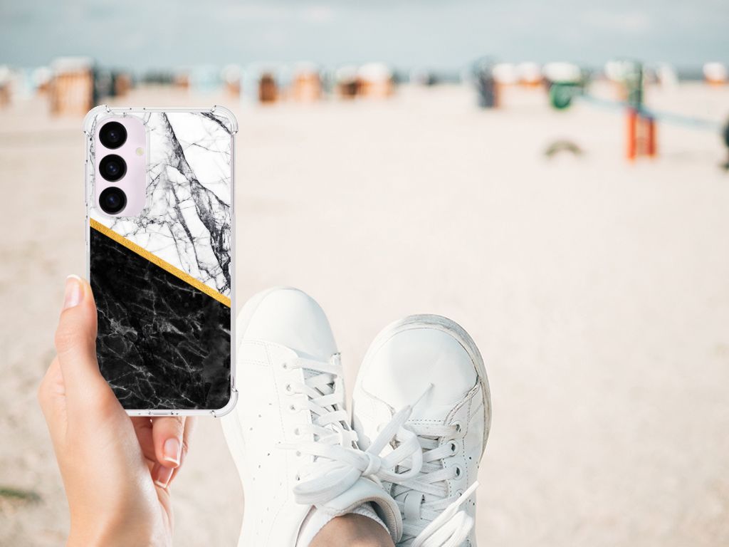 Ben je op zoek naar een uniek telefoonhoesje voor je Samsung Galaxy S24 Plus? Dan ben je bij B2C Telecom aan het juiste adres! Speciaal voor jou hebben we dit prachtige Marble White Black design in onze collectie hoesjes opgenomen. Het design wordt bedrukt op een Anti-Shock Hoesje en is gemaakt van flexibel rubber. Het hoesje is perfect voor de actieve smartphonegebruiker door de opstaande randen/hoeken. Denk aan mensen die veel sporten, reizen of wandelen en net iets meer zekerheid willen als het op hun geliefde telefoon aankomt. Het design wordt alleen aan de bovenkant van het hoesje bedrukt en de randen blijven transparant. Aan de zijkanten zijn uitsparingen gemaakt waardoor je met gemak alle knoppen en poorten kunt bedienen. Wij adviseren om dit hoesje in combinatie met een screenprotector te gebruiken voor een langere levensduur van je telefoon. Wil je dit hoesje nog iets extra's geven? Voeg dan gratis je naam of een quote toe! Is dit design hoesje toch niet helemaal wat je zocht? Ontwerp dan zelf een hoesje in ons ontwerpprogramma.