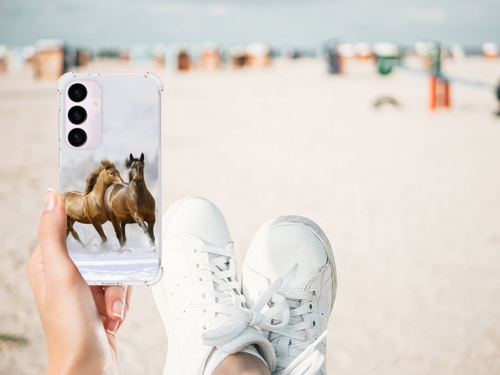 Ben je op zoek naar een uniek telefoonhoesje voor je Samsung Galaxy S24 Plus? Dan ben je bij B2C Telecom aan het juiste adres! Speciaal voor jou hebben we dit prachtige Paarden in onze collectie hoesjes opgenomen. Het design wordt bedrukt op een Case Anti-shock en is gemaakt van flexibel rubber. Het hoesje is perfect voor de actieve smartphonegebruiker door de opstaande randen/hoeken. Denk aan mensen die veel sporten, reizen of wandelen en net iets meer zekerheid willen als het op hun geliefde telefoon aankomt. Het design wordt alleen aan de bovenkant van het hoesje bedrukt en de randen blijven transparant. Aan de zijkanten zijn uitsparingen gemaakt waardoor je met gemak alle knoppen en poorten kunt bedienen. Wij adviseren om dit hoesje in combinatie met een screenprotector te gebruiken voor een langere levensduur van je telefoon. Wil je dit hoesje nog iets extra's geven? Voeg dan gratis je naam of een quote toe! Is dit design hoesje toch niet helemaal wat je zocht? Ontwerp dan zelf een hoesje in ons ontwerpprogramma.