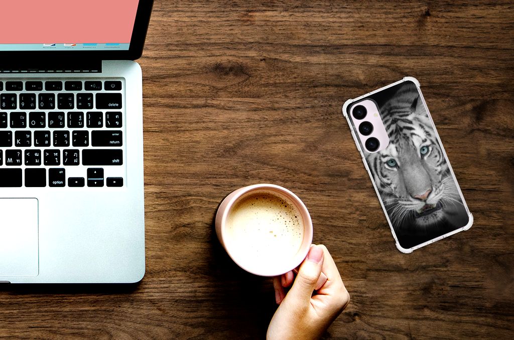 Ben je op zoek naar een uniek telefoonhoesje voor je Samsung Galaxy S24 Plus? Dan ben je bij B2C Telecom aan het juiste adres! Speciaal voor jou hebben we dit prachtige Tijger design in onze collectie hoesjes opgenomen. Het design wordt bedrukt op een Case Anti-shock en is gemaakt van flexibel rubber. Het hoesje is perfect voor de actieve smartphonegebruiker door de opstaande randen/hoeken. Denk aan mensen die veel sporten, reizen of wandelen en net iets meer zekerheid willen als het op hun geliefde telefoon aankomt. Het design wordt alleen aan de bovenkant van het hoesje bedrukt en de randen blijven transparant. Aan de zijkanten zijn uitsparingen gemaakt waardoor je met gemak alle knoppen en poorten kunt bedienen. Wij adviseren om dit hoesje in combinatie met een screenprotector te gebruiken voor een langere levensduur van je telefoon. Wil je dit hoesje nog iets extra's geven? Voeg dan gratis je naam of een quote toe! Is dit design hoesje toch niet helemaal wat je zocht? Ontwerp dan zelf een hoesje in ons ontwerpprogramma.