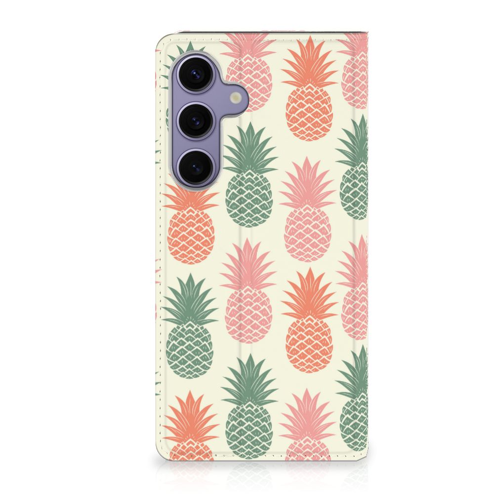 Ananas is een woord uit het Tupi, de taal van de Tupi-indianen, en betekent uitmuntende vrucht. Dit fruit van zeer hoge kwaliteit staat op onze superieure boekhoesjes, stand cases, hard cases en TPU cases. Jij blijft er gezond uitzien als je zo nu en dan een hap neemt van een Ananas , jouw smartphone blijft tip top in orde als je er een leuk telefoonhoesje omheen doet. Een ananas heeft stevig, veerkrachtig vruchtvlees. Een beetje te vergelijken met het TPU in onze hoesjes. TPU is elastisch materiaal, dat zeer buigzaam is. Vandaar dat het zeer schokbestendig is. Het ananas design staat op een stand case. Deze Samsung Galaxy S24 Plus Flip Style Cover beschermt jouw telefoon aan alle kanten en beschikt over een 1 opbergvakje en een speciale standaard. Het hoesje wordt afgesloten met een magneet aan de binnenzijde. De houder aan de binnenzijde is van TPU.