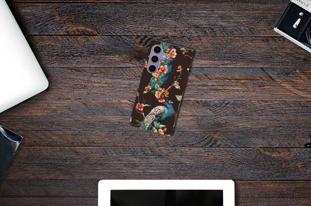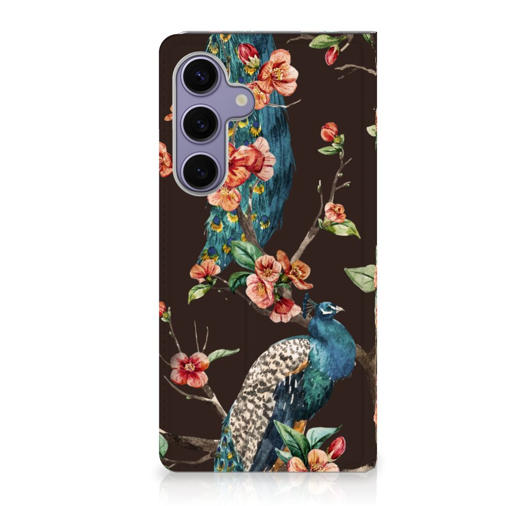Samsung Galaxy S24 Plus Telefoonhoesje met Pasjes Pauw met Bloemen