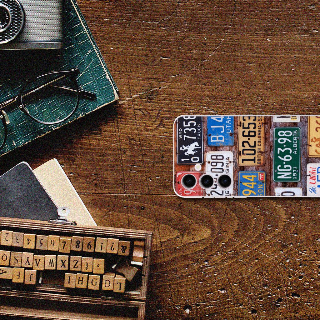Je gaat waarschijnlijk helemaal uit je plaat met deze Samsung Galaxy S24 Plus Siliconen Hoesje met foto met Amerikaanse Kentekenplaten. Kentekenplaten van Utah, Virginia, Nebraska, Kansas en Iowa: ze komen allemaal voorbij op deze opzienbarende tpu case, te koop voor een zeer scherpe prijs. Behalve een hoes met een fraaie print van kentekenplaten krijg je ook een case met zeer veel praktische eigenschappen. Zoals het elastische materiaal, dat de ergste schokken en stoten zeer makkelijk opvangt als je telefoon op de grond valt. De case wordt aan de bovenkant bedrukt, terwijl de zijkanten transparant blijven. De case heeft opstaande randen, waardoor het scherm extra beschermd is. Samen met een screenprotector is een betere bescherming dan deze tpu case met Amerikaanse kentekenplaten nauwelijks denkbaar.
