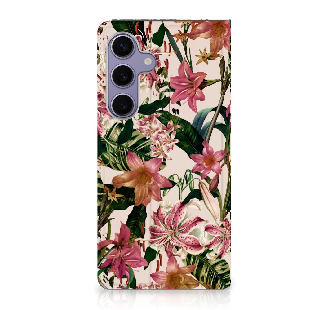 Dit Flowers design is een zegen voor de mens en zijn smartphone. De paarswitte bloemen en groene bladeren op deze Samsung Galaxy S24 Plus Smart Cover geven jouw smartphone een zeer sierlijke uitstraling. Je krijgt er meteen een goed gevoel bij als je aan het appen, mailen of aan het bellen bent. Valt dan je telefoon op de grond, dan zal er dankzij de stand case met paarswitte bloemen en groene bladeren geen schade ontstaan. Onze stand cases met paarswitte bloemen en groene bladeren bieden de allerbeste bescherming en zijn heel praktisch, wat blijkt uit onder meer het vakje aan de binnenkant en de handige standaard waarmee je de smartphone rechtop op tafel neer kunt zetten. De paarswitte bloemen en groene bladeren komen op alle zijden van de case te staan. Op deze stand case van leer en TPU (houder aan de binnenkant) kun je in no time zelf foto’s van jouw favoriete bloemen zetten.