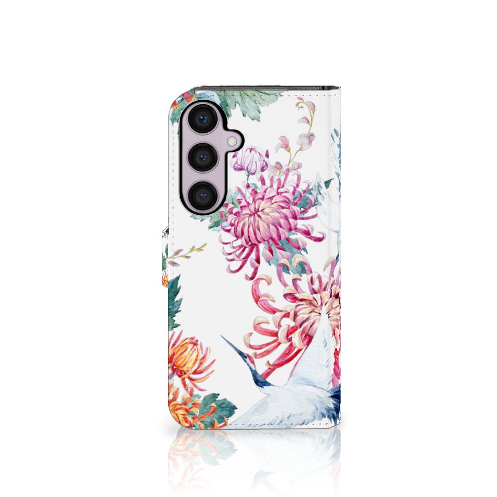 Samsung Galaxy S24 Plus Telefoonhoesje sluit met magnetische lipje Bird Flowers