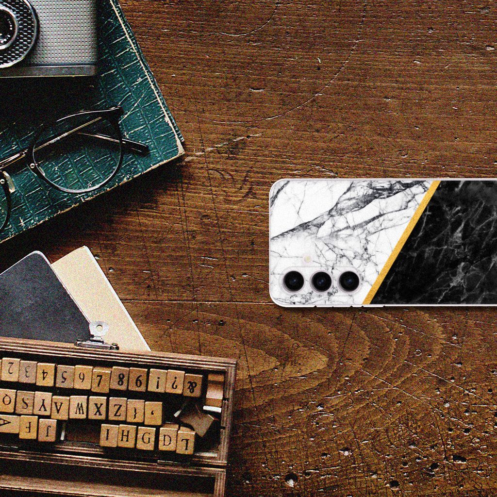 Samsung Galaxy S24 Plus Anti-Shock Hoesje Marmer Wit Zwart - Origineel Cadeau Man
