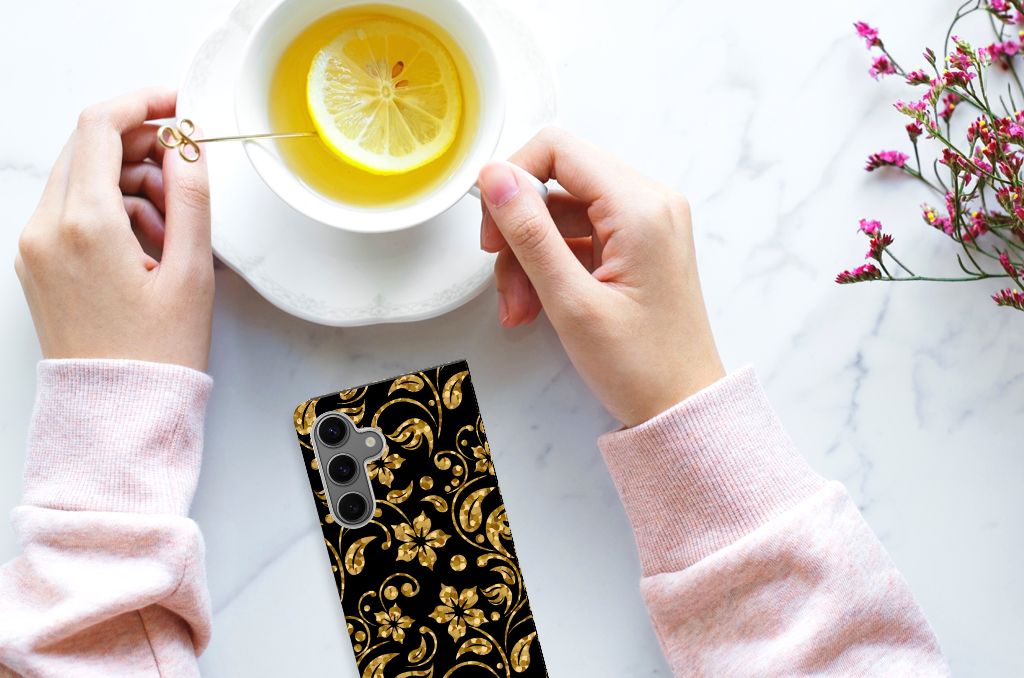 Ben je op zoek naar een uniek telefoonhoesje voor je Samsung Galaxy S24? Dan ben je bij B2C Telecom aan het juiste adres! Speciaal voor jou hebben we dit prachtige Gouden Bloemen design in onze collectie hoesjes opgenomen. Het design wordt bedrukt op een Smart Cover en heeft een vakje aan de binnenkant voor een pasje. Het fijne aan dit hoesje is dat je het als standaard neer kunt zetten. Hierdoor geniet je nog meer als je een filmpje aan het kijken bent op je telefoon. Het hoesje wordt afgesloten door magneten aan de binnenkant. Wil je dit design hoesje nog iets extra's geven? Voeg dan gratis je naam of een quote toe! Is dit design hoesje toch niet helemaal wat je zocht? Ontwerp dan zelf een hoesje in ons ontwerpprogramma.