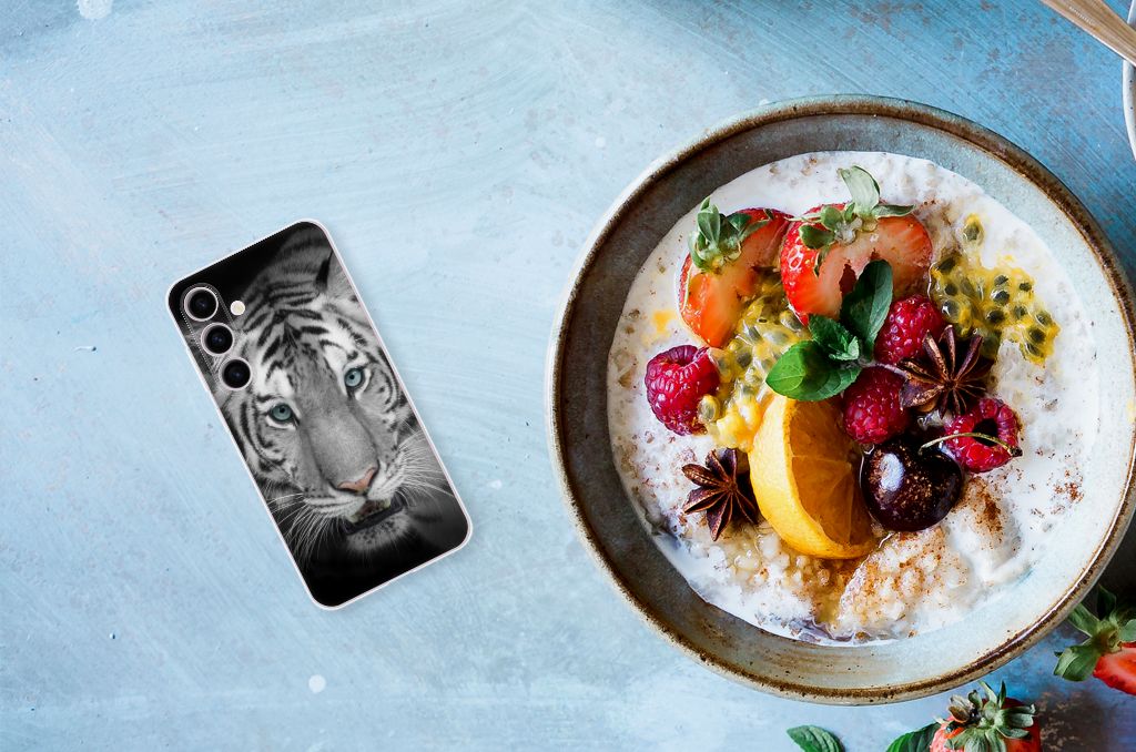 Omdat de Witte Tijger zo bijzonder is, zijn wij bereid deze voor zeer lage kosten op een tpu case te zetten. Dit kunnen we zo goedkoop doen omdat we het drukwerk in eigen beheer doen. Witte tijgers leefden lange tijd in de bossen van India, Bangladesh, Nepal, Bhutan en China en kunnen wel 257 kilo wegen. Dit zwaargewicht kunnen we bedrukken op verschillende soorten hoesjes, zoals deze tpu cases. Deze Samsung Galaxy S24 TPU Hoesje kan exclusief in het bezit van jou komen. Zeker als je er zelf nog unieke teksten en/of beelden aan toevoegt. Het tpu hoesje is zeer flexibel en wordt alleen aan de bovenzijde bedrukt. De randen van dit flexibele hoesje blijven doorzichtig. Tegenwoordig zijn witte tijgers alleen in gevangenschap te bewonderen. Jij zorgt voor een goede bescherming van je smartphone met dit design hoesje met witte tijger.
