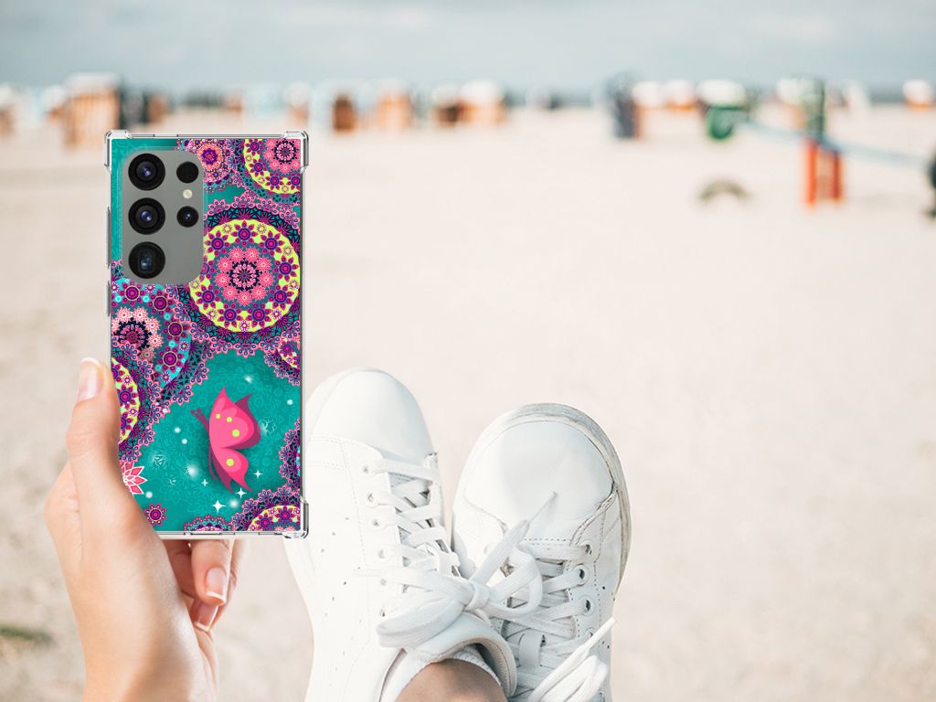 Ben je op zoek naar een uniek telefoonhoesje voor je Samsung Galaxy S24 Ultra? Dan ben je bij B2C Telecom aan het juiste adres! Speciaal voor jou hebben we dit prachtige Cirkels en Vlinders design in onze collectie hoesjes opgenomen. Het design wordt bedrukt op een Back Cover en is gemaakt van flexibel rubber. Het hoesje is perfect voor de actieve smartphonegebruiker door de opstaande randen/hoeken. Denk aan mensen die veel sporten, reizen of wandelen en net iets meer zekerheid willen als het op hun geliefde telefoon aankomt. Het design wordt alleen aan de bovenkant van het hoesje bedrukt en de randen blijven transparant. Aan de zijkanten zijn uitsparingen gemaakt waardoor je met gemak alle knoppen en poorten kunt bedienen. Wij adviseren om dit hoesje in combinatie met een screenprotector te gebruiken voor een langere levensduur van je telefoon. Wil je dit hoesje nog iets extra's geven? Voeg dan gratis je naam of een quote toe! Is dit design hoesje toch niet helemaal wat je zocht? Ontwerp dan zelf een hoesje in ons ontwerpprogramma.