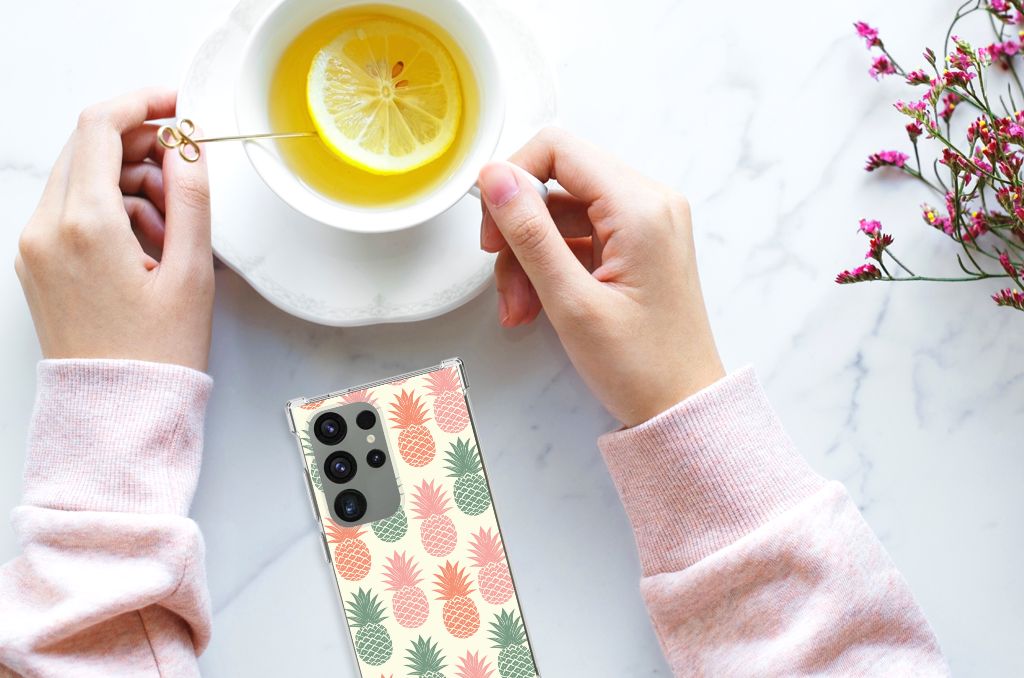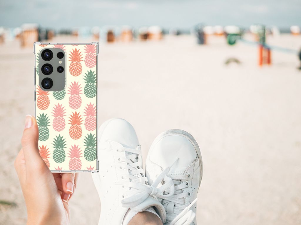 Ben je op zoek naar een uniek telefoonhoesje voor je Samsung Galaxy S24 Ultra? Dan ben je bij B2C Telecom aan het juiste adres! Speciaal voor jou hebben we dit prachtige Ananas design in onze collectie hoesjes opgenomen. Het design wordt bedrukt op een Beschermhoes en is gemaakt van flexibel rubber. Het hoesje is perfect voor de actieve smartphonegebruiker door de opstaande randen/hoeken. Denk aan mensen die veel sporten, reizen of wandelen en net iets meer zekerheid willen als het op hun geliefde telefoon aankomt. Het design wordt alleen aan de bovenkant van het hoesje bedrukt en de randen blijven transparant. Aan de zijkanten zijn uitsparingen gemaakt waardoor je met gemak alle knoppen en poorten kunt bedienen. Wij adviseren om dit hoesje in combinatie met een screenprotector te gebruiken voor een langere levensduur van je telefoon. Wil je dit hoesje nog iets extra's geven? Voeg dan gratis je naam of een quote toe! Is dit design hoesje toch niet helemaal wat je zocht? Ontwerp dan zelf een hoesje in ons ontwerpprogramma.