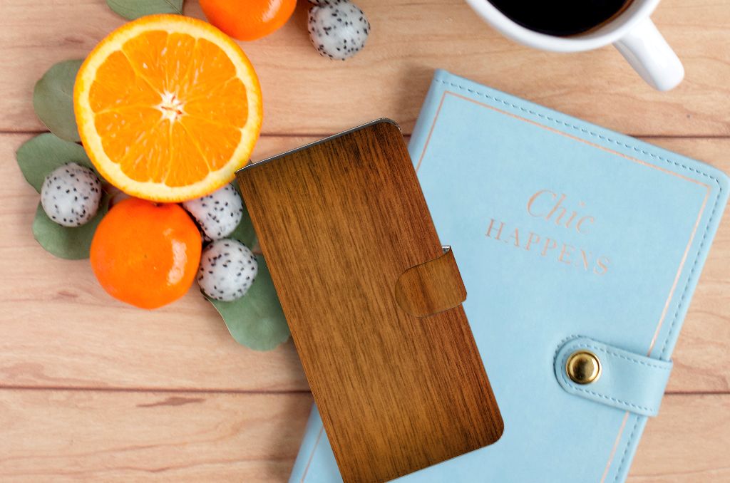 Samsung Galaxy S24 Ultra Book Style Case met pasjeshouder Donker Hout