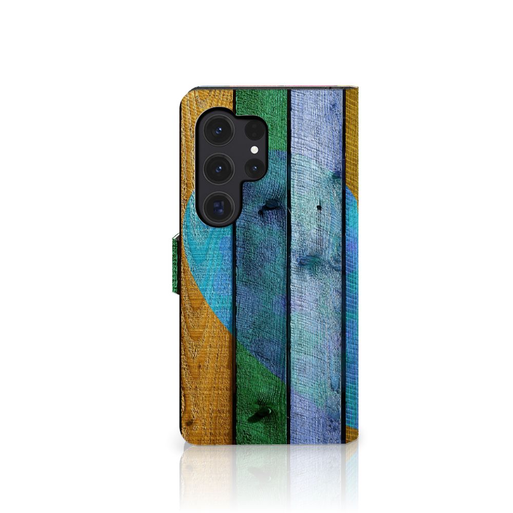 Samsung Galaxy S24 Ultra Bookstyle Case met pasjes Wood Heart