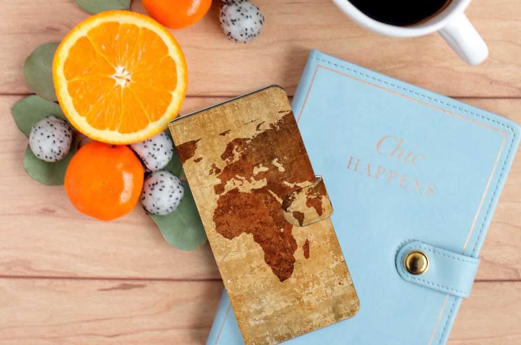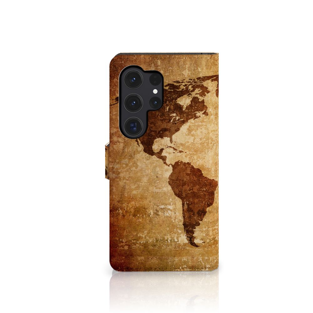 Samsung Galaxy S24 Ultra Flip Cover met pasjes Wereldkaart