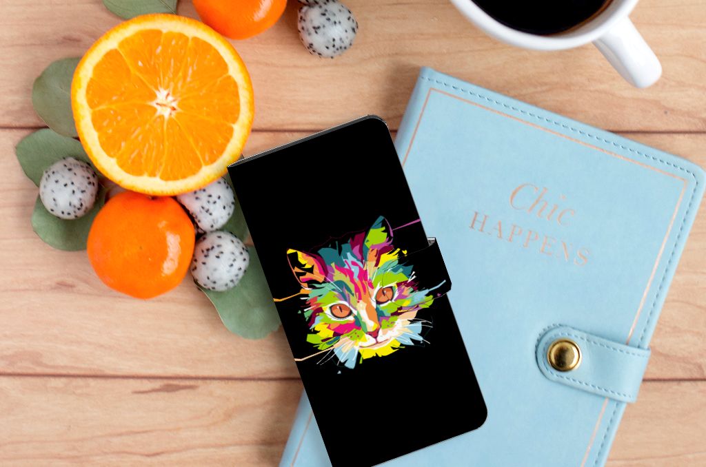 Als jij van katten houdt en op zoek bent naar een uniek hoesje, dan is dit het hoesje wat je wilt hebben. Op de voorkant van dit Leuk Hoesje vind je namelijk een mooie afbeelding van een kat in alle kleuren van de regenboog op een zwarte klassieke achtergrond. Naast dat het een mooi hoesje betreft, is het ook nog eens ontzettend handig. Zo kun je in deze bookcase wel twee á drie pasjes en briefgeld kwijt. Hiermee kun je jouw belangrijkste bezittingen op een plek bewaren in het boekhoesje en kun je jouw portemonnee voortaan thuislaten. Een bookcase heeft daarnaast ook nog het voordeel dat jouw telefoon aan alle zijdes wordt beschermd in dit leuke hoesje, dubbel zo handig dus!