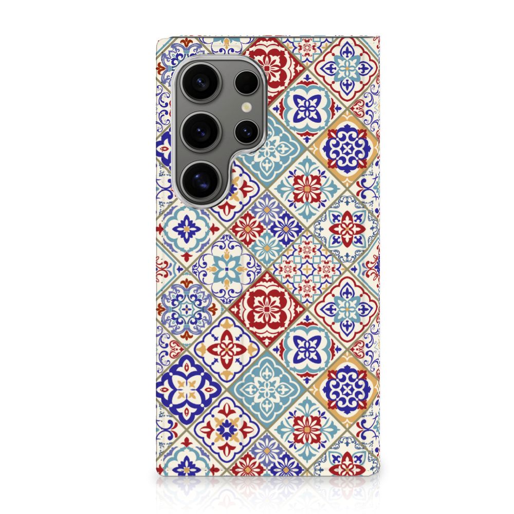 Samsung Galaxy S24 Ultra Standcase Marmer Zwart - Origineel Cadeau Vader
