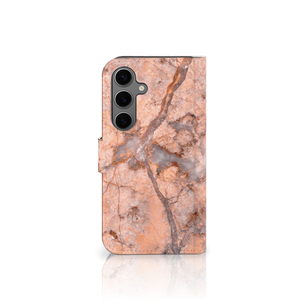 Samsung Galaxy S25 Bookcase met pasjes Marmer Oranje
