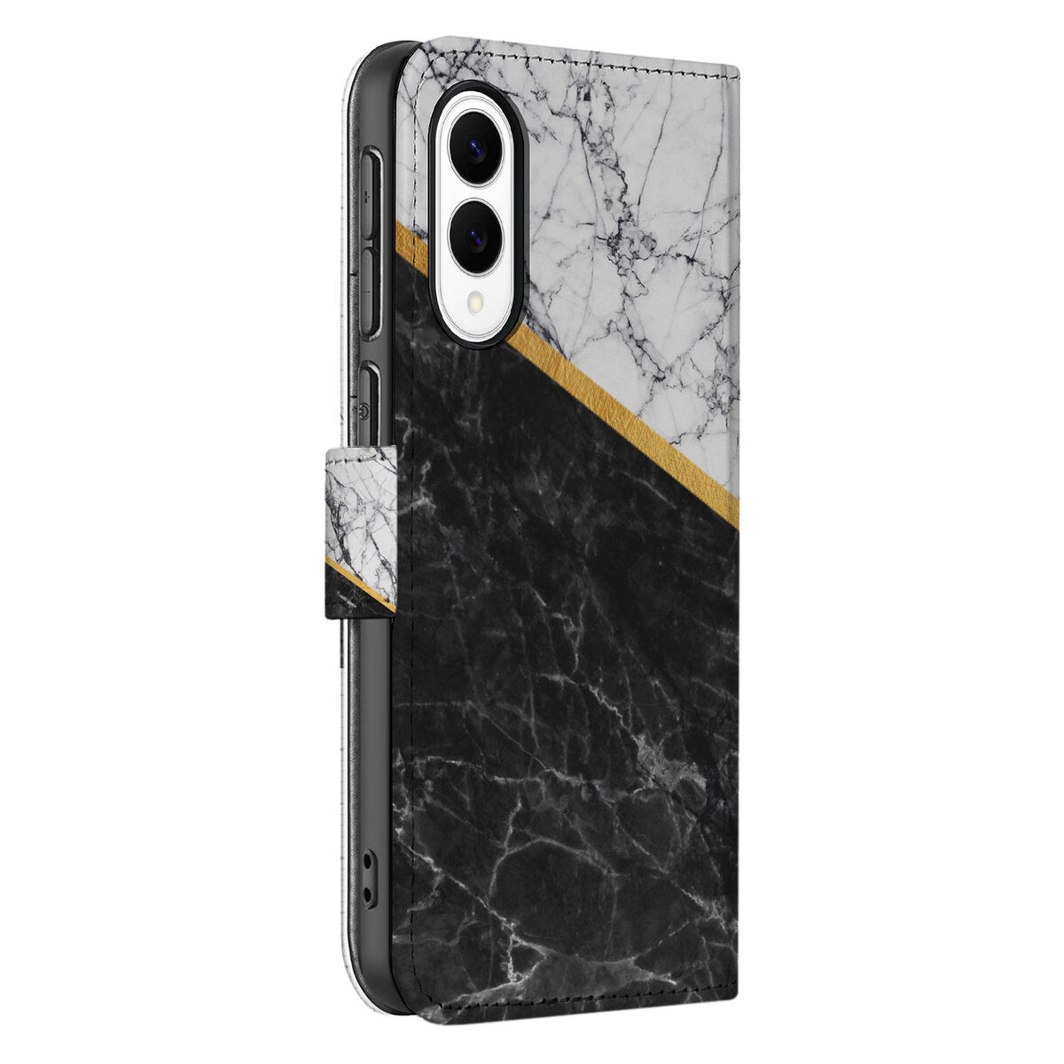 Samsung Galaxy S25 Edge Bookcase Marmer Wit Zwart - Origineel Cadeau Man