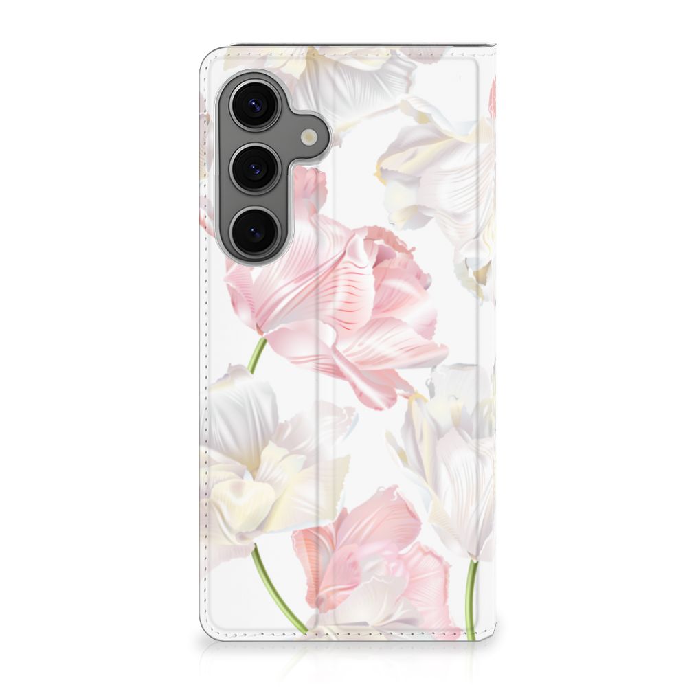 Een bosje bloemen doet een mens (en zijn smartphone) goed. De witte en roze bloemen op dit Samsung Galaxy S25 Plus Smart Cover geven jouw smartphone een zeer mooie uitstraling. Je wordt er ook meteen een stuk rustiger van als je aan het appen of aan het bellen bent. Valt dan je telefoon op de grond, dan zal er dankzij de stand case met het design Lovely Flowers ontstaan. Onze stand cases met roze en witte bloemen zien er zeer prettig uit en zijn heel praktisch, wat blijkt uit onder meer het vakje aan de binnenkant en de handige standaard waarmee je de smartphone rechtop op tafel neer kunt zetten. De roze en witte bloemen passen goed op alle zijden van de case. Op deze stand case van leer en TPU (houder aan de binnenkant) kun je trouwens ook je eigen bloemige ontwerp zetten. In een paar simpele stappen maak je zelf een stand hoesje met daarop jouw mooiste bloemen.