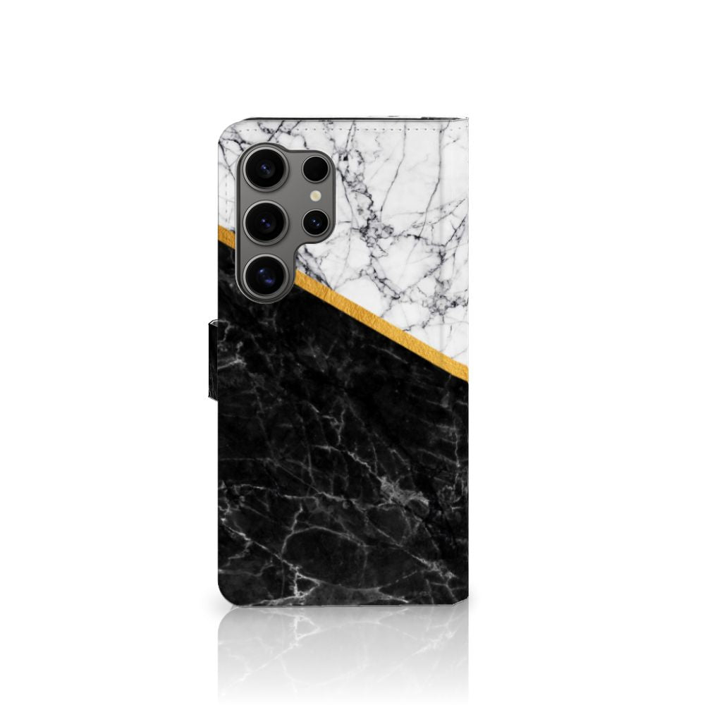 Bookcase Samsung Galaxy S25 Ultra Marmer Wit Zwart