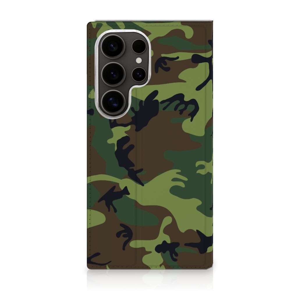 Voel je jezelf verbonden met het leger, dan zal deze Samsung Galaxy S25 Ultra Hoesje met Magneet je zeker bevallen. Het design hoesje beschikt namelijk over donkere camouflage kleuren. Deze worden vaak gebruikt door mensen die zich graag willen mengen in hun omgeving. Dit Army Dark hoesje is er dus voornamelijk in kleuren die in de natuur voorkomen, zodat je één wordt met je achtergrond. Beschermt de krijgsmacht volk en vaderland, dit hoesje in donkere camouflage kleuren zal jouw telefoon onder alle omstandigheden schadevrij houden. Met een hoesje in dit soort kleuren zal je niet zo snel opvallen. Wel is het echter een hele stoere case. Het design staat op een stand case. Deze case beschermt jouw telefoon aan alle kanten en beschikt over een 1 opbergvakje en een speciale standaard. Het hoesje wordt afgesloten met een magneet aan de binnenzijde. De houder aan de binnenzijde is van TPU. Alle zijden van de case worden bedrukt met donkere camouflage kleuren.