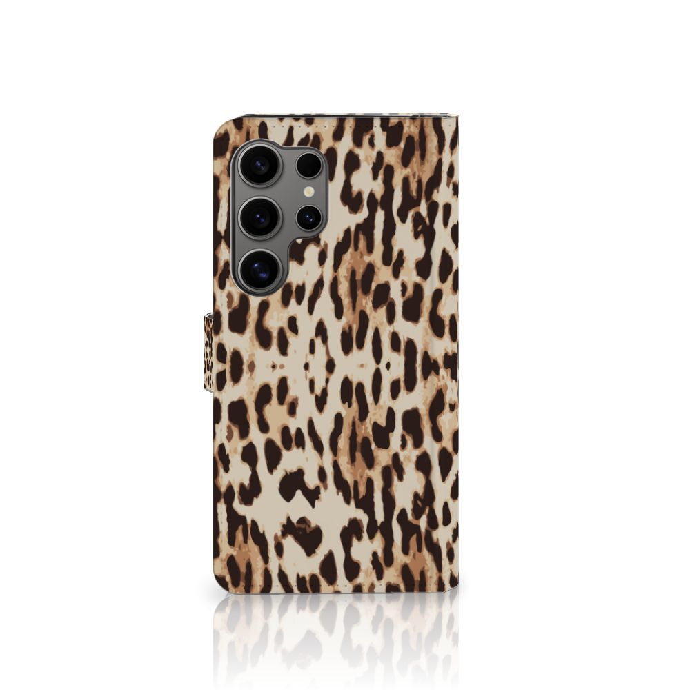 Samsung Galaxy S25 Ultra Telefoonhoesje met Pasjes en met magnetische sluitclip Leopard
