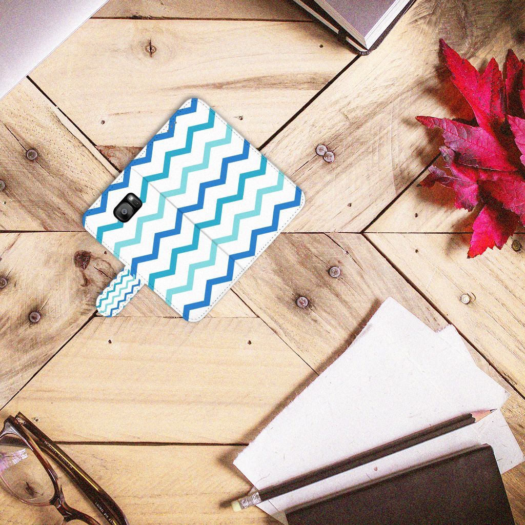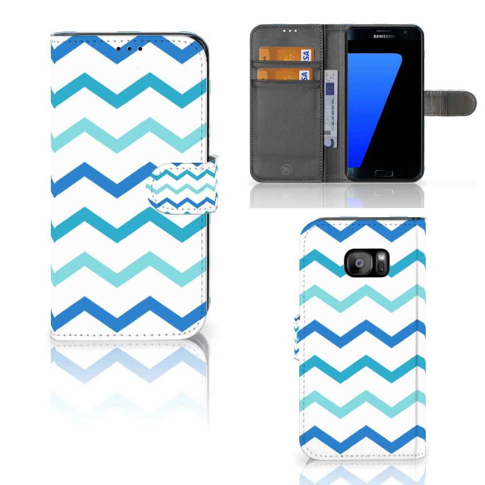 Dit zigzag blauwe design hoesje is speciaal ontworpen voor jou. We hebben bewust verschillende stijlen blauw gebruikt, zodat er voldoende sprake is van variatie. Dit blauwwitte Telefoon Hoesje ziet er super strak uit. Dat kan ook niet anders, als je weet dat onze zeer talentvolle designer er hoogstpersoonlijk voor verantwoordelijk is. Hij schudt wekelijks nieuwe designs uit zijn mouw en dit zigzag blauwe hoesje is een van zijn fraaiste creaties. Een heel dik design hoesje, al zeggen we het zelf. Valt dit blauwwitte design hoesje goed bij jou? Bestel het dan vandaag nog en je hebt het morgen in huis. Het design staat op een boekhoesje. Dit smartphonehoesje beschermt jouw Samsung Galaxy S7 Edge aan alle zijden en beschikt over verschillende opbergvakjes voor pasjes en briefgeld. De case sluit perfect af met het lipje aan de buitenkant. De houder aan de binnenzijde is van TPU. Alle zijden van het hoesje worden bedrukt, inclusief het lipje.