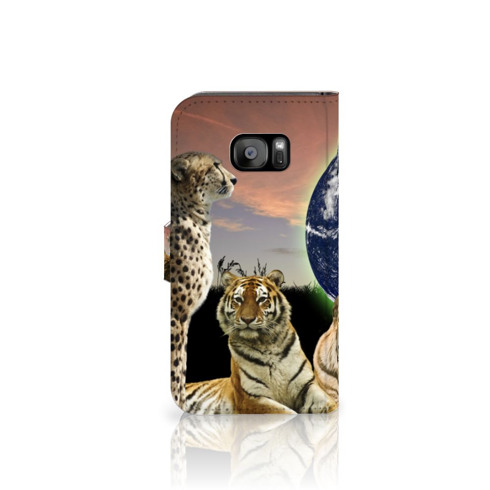 Samsung Galaxy S7 Edge Telefoonhoesje met Pasjes en magnetische sluiting Roofdieren