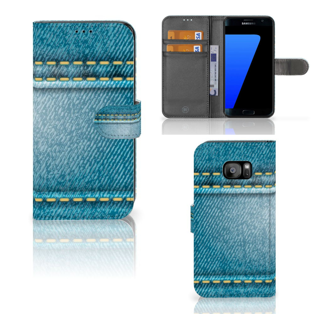 Samsung Galaxy S7 Edge Walletcase gemaakt van TPU-siliconen en kunstleer Jeans