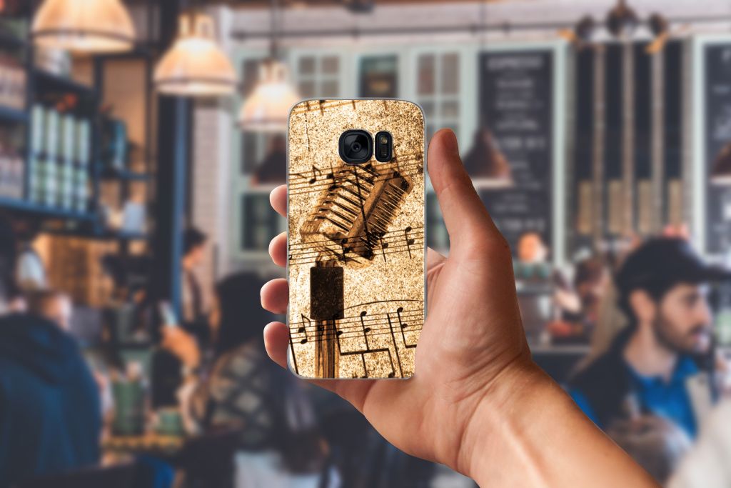 Ben je muzikant, dan is dit design hoesje met Bladmuziek wellicht echt iets voor jou. Met de intrede van nieuwe media wordt de rol van papieren bladmuziek teruggedrongen. Steeds vaker treft men 'bladmuziek' op een beeldschermapparaat, zoals een tablet-pc, e-reader of iPad aan. Gelukkig maar, want als er geen nieuwe media zouden zijn, hadden wij ook nooit onze Phone Case Designer kunnen ontwerpen. Met deze unieke ontwerpmodule kun je jouw favoriete band of artiest op je smartphone hoesje zetten, maar je kunt ook gaan voor dit prachtige design hoesje met print van bladmuziek. Het design staat op een Samsung Galaxy S7 Siliconen Hoesje met foto. Deze case beschermt jouw telefoon vooral aan de achterzijde en zijkanten en is zeer flexibel. Het hoesje blijft aan de zijkanten transparant, de bovenkant is geheel bedrukt. TPU is onbreekbaar materiaal, dat zeer schokabsorberend is. Het hoesje past altijd in je broekzak en combineert uitstekend met een screenprotector.