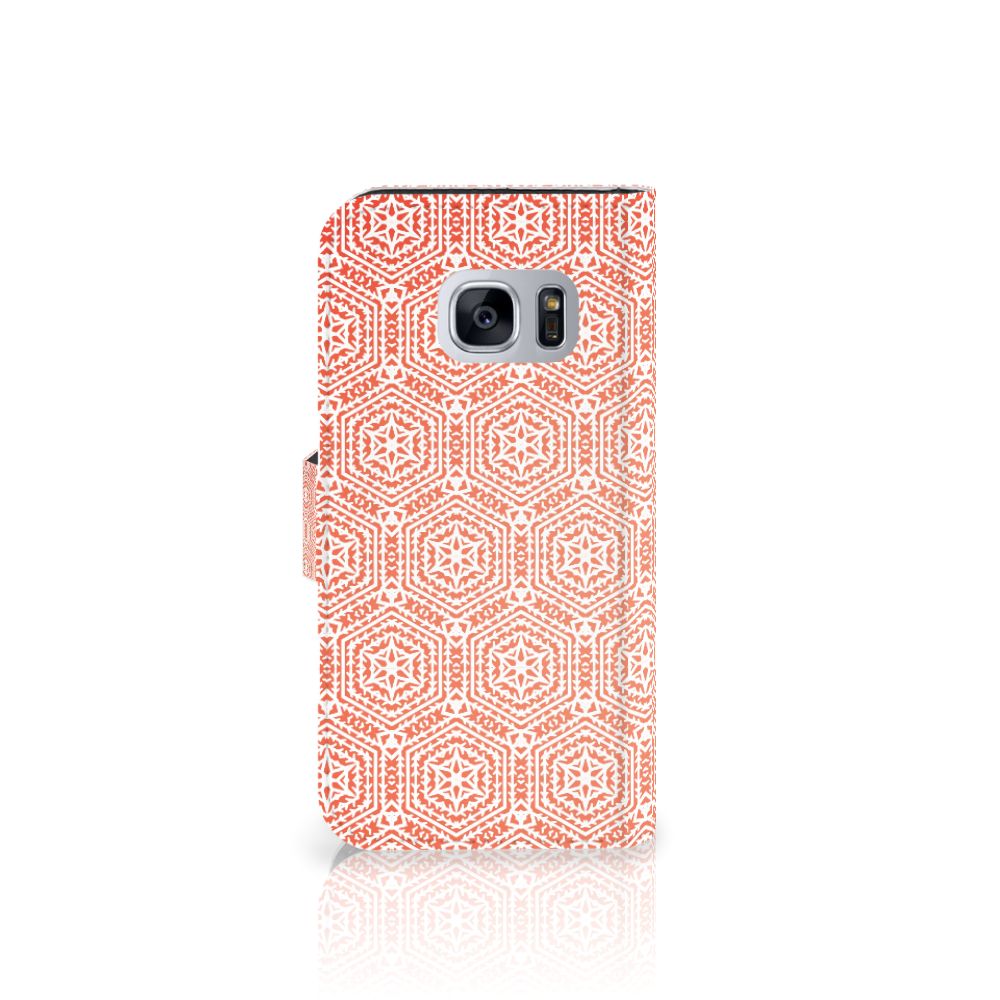 Dit Samsung Galaxy S7 Telefoon Hoesje met Pattern Orange vind je in geen enkel andere winkel of webshop. Heb je het eenmaal in je bezit, dan wil waarschijnlijk nooit meer een ander smartphone hoesje meer. Het design met oranje en wit patroon is bijzonder smaakvol en op maat gemaakt voor jouw smartphone. Dat is de kracht van het hoesje. Met dit design hoesje met oranje en wit patroon zal je ook heel erg opvallen. Dit is voor veel smartphone gebruikers een belangrijk voordeel. Dit zeer populaire smartphone hoesje met oranje patroon heeft verschillende vakjes en is aan alle zijden bedrukt. Zelfs het lipje aan de buitenkant heeft een print. Het oranje patroon staat op dit boekhoesje erg goed. De houder is van TPU, de buitenzijde van PU-leer.