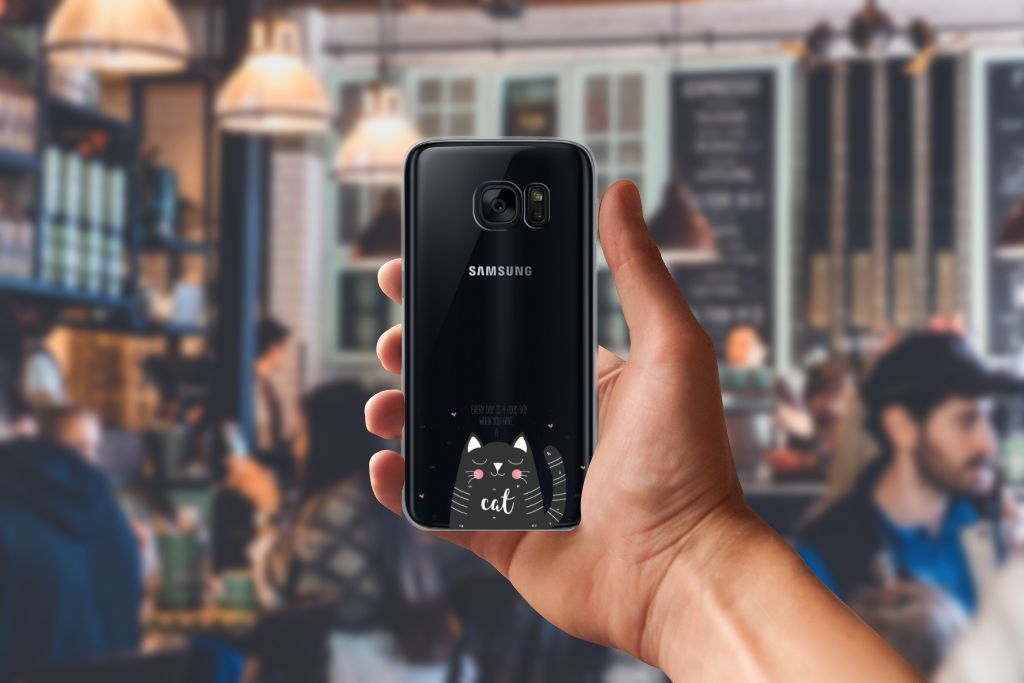 Ben je op zoek naar een uniek telefoonhoesje voor je Samsung Galaxy S7? Dan ben je bij B2C Telecom aan het juiste adres! Speciaal voor jou hebben we dit prachtige Cat Good Day design in onze collectie hoesjes opgenomen. Het design wordt bedrukt op een Telefoonhoesje met Naam en is gemaakt van flexibel rubber. Het design wordt alleen aan de bovenkant van het hoesje bedrukt en de randen blijven transparant. Aan de zijkanten zijn uitsparingen gemaakt waardoor je met gemak alle knoppen en poorten kunt bedienen. Wij adviseren om dit hoesje in combinatie met een screenprotector te gebruiken voor een langere levensduur van je telefoon. Wil je dit design hoesje nog iets extra's geven? Voeg dan gratis je naam of een quote toe! Is dit design hoesje toch niet helemaal wat je zocht? Ontwerp dan zelf een hoesje in ons ontwerpprogramma.