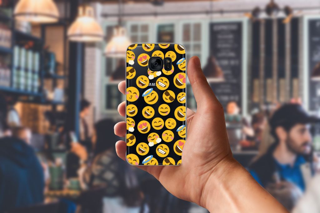 Je gebruikt ze waarschijnlijk dagelijks: emoji’s. Daarom hebben we besloten ze op een design hoesje te zetten. De kleurrijke, vaak gele emoticons maken chatberichten net wat spontaner. Dat hebben we allemaal te danken aan Japan, waar de emoji’s die we zo goed kennen vandaan komen. Ondertussen zijn er meer dan 1800! Deze passen natuurlijk niet allemaal op een Samsung Galaxy S7 TPU bumper, maar we hebben de meeste gebruikte exemplaren erop gezet. Deze tpu case is voorzien van opstaande randen zodat het touchscreen van je telefoon beter is beschermd. Super handig. Het TPU zelf is zeer flexibel en is op maat gemaakt. We gebruiken emoji’s vaak om complete woorden te vervangen. Dit smartphone hoesje zegt dan ook meer dan duizend woorden kunnen. De tpu case wordt alleen aan de bovenzijde bedrukt met emoji’s. De zijkanten van de case worden niet bedrukt en blijven transparant.