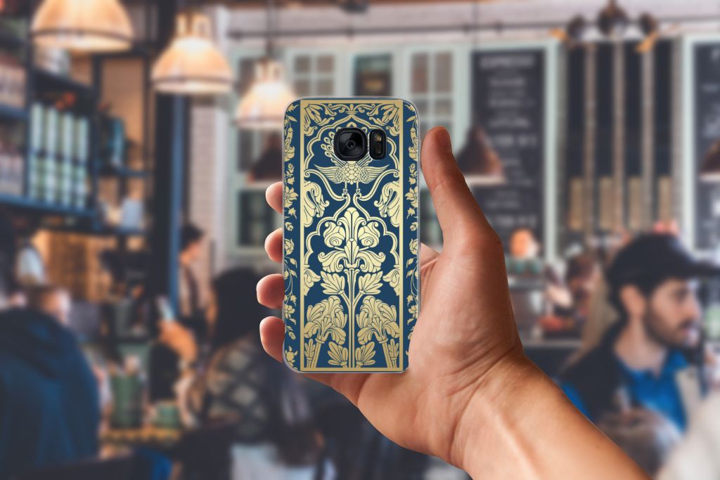 Dit koninklijke hoesje met Beige Flowers ziet er oogverblindend uit. De beige kleur geeft dit design hoesje een super fraai en chique uiterlijk. Je voelt jezelf de koning te rijk als je jouw telefoon beschermt met deze elegante case. De donkerblauwe achtergrond geeft dit design hoesje extra uitstraling en combineert goed met beige. Het hoesje ziet er zeer kostbaar uit, maar is erg goedkoop. Voor een zeer bescheiden bedrag ben je in het bezit van dit design hoesje. De case geeft jou en je Samsung Galaxy S7 extra status. Voor goedkope design hoesjes zit je goed bij B2C Telecom. Het design staat op een TPU Case. Dit hoesje wordt alleen aan de bovenkant bedrukt en is zeer flexibel. De randen van het hoesje blijven transparant en worden niet bedrukt. Met dit hoesje past jouw telefoon altijd in je broekzak.
