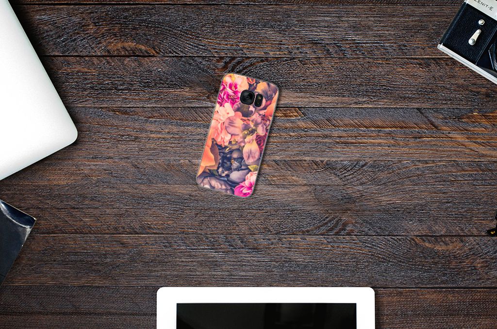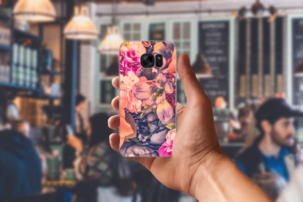 Dit Bosje Bloemen doet een mens en zijn smartphone goed. De oranje, paarse en roze bloemen op deze Samsung Galaxy S7 TPU Case geven jouw smartphone een zeer sierlijke uitstraling. Je wordt er ook meteen vrolijker van als je aan het appen, mailen of aan het bellen bent. Valt dan je telefoon op de grond, dan zal er dankzij de tpu case met oranje, paarse en roze bloemen geen schade ontstaan. Helemaal niet als je er een screenprotector bij hebt gekocht. Onze tpu cases met oranje, paarse en roze bloemen zien er zeer prettig uit en zijn heel praktisch, getuige onder meer de opstaande randen en het flexibele materiaal. Alleen de achterkant van de tpu case wordt bedrukt met oranje, paarse en roze bloemen. Op deze tpu case is het ook mogelijk je eigen ontwerp te zetten. In no time ontwerp je zelf een tpu case met daarop foto’s van jouw favoriete bloemen.