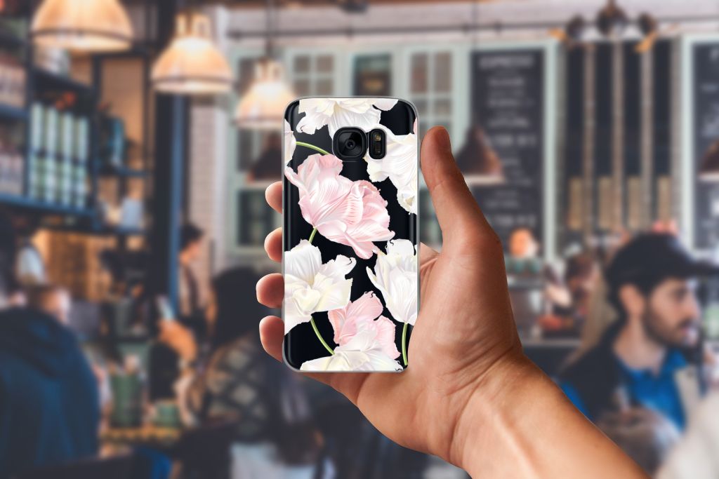 Een bosje bloemen doet een mens (en zijn smartphone) goed. De witte en roze bloemen op deze Samsung Galaxy S7 TPU Case geven jouw smartphone een zeer mooie uitstraling. Je wordt er ook meteen een stuk rustiger van als je aan het appen of aan het bellen bent. Valt dan je telefoon op de grond, dan zal er dankzij de tpu case met het design Lovely Flowers ontstaan. Helemaal niet als je er een screenprotector bij hebt gekocht. Onze tpu cases met roze en witte bloemen zien er zeer prettig uit en zijn heel praktisch, getuige onder meer de opstaande randen en het flexibele materiaal. Alleen de achterkant van de tpu case wordt bedrukt met roze en witte bloemen. Op deze tpu case kun je trouwens ook een eigen ontwerp zetten. In een paar simpele stappen ontwerp je zelf een stand case met daarop jouw favoriete bloemen.