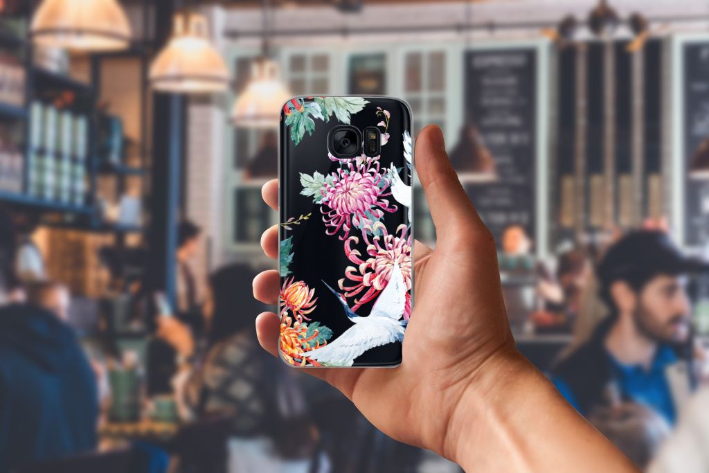 Verspreid over de hele wereld leven 19 soorten ooievaars. De spanwijdte – dat is de afstand van vleugeltip tot vleugeltip – van een volwassen ooievaar kan 2.50 meter bedragen. De gebieden waarin de ooievaar broedt, liggen in heel Europa, het Midden-Oosten, West- en Centraal-Azië en Noordwest-Afrika. Het ideale leefgebied van de ooievaar is een half open tot open landschap met veel afwisseling in grondgebruik en begroeiing. De begroeiing op dit design hoesje, in allerlei verschillende kleuren, zal niet alleen voor de ooievaars fraai zijn. Jij zult er zelf ook heel vrolijk van worden. Het in het oog springende design staat op een TPU Hoesje. Dit telefoonhoesje wordt alleen aan de bovenkant bedrukt en is zeer flexibel. De randen van het hoesje blijven transparant en worden niet bedrukt. Met dit hoesje past jouw Samsung Galaxy S7 altijd in je broekzak.