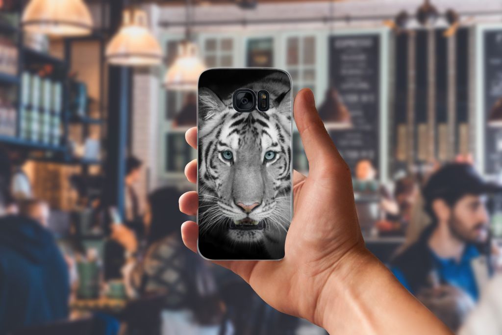 Omdat de Witte Tijger zo bijzonder is, zijn wij bereid deze voor zeer lage kosten op een tpu case te zetten. Dit kunnen we zo goedkoop doen omdat we het drukwerk in eigen beheer doen. Witte tijgers leefden lange tijd in de bossen van India, Bangladesh, Nepal, Bhutan en China en kunnen wel 257 kilo wegen. Dit zwaargewicht kunnen we bedrukken op verschillende soorten hoesjes, zoals deze tpu cases. Deze Samsung Galaxy S7 TPU Hoesje kan exclusief in het bezit van jou komen. Zeker als je er zelf nog unieke teksten en/of beelden aan toevoegt. Het tpu hoesje is zeer flexibel en wordt alleen aan de bovenzijde bedrukt. De randen van dit flexibele hoesje blijven doorzichtig. Tegenwoordig zijn witte tijgers alleen in gevangenschap te bewonderen. Jij zorgt voor een goede bescherming van je smartphone met dit design hoesje met witte tijger.